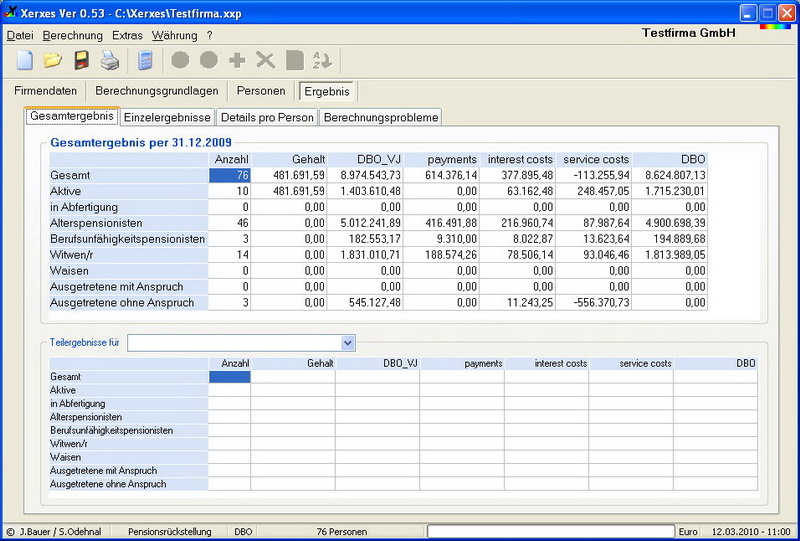 Das Ergebnis der Berechnung wird als Gesamtergebnis, gruppiert nach Bestandskennzeichen dargestellt.